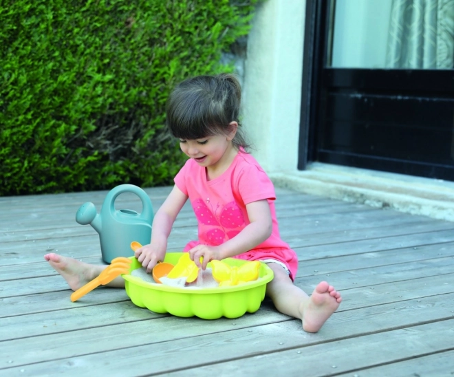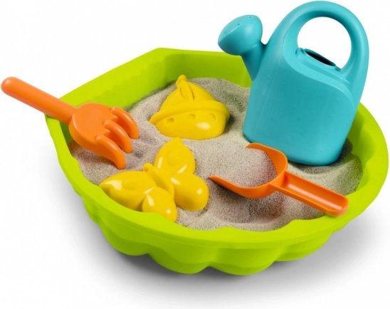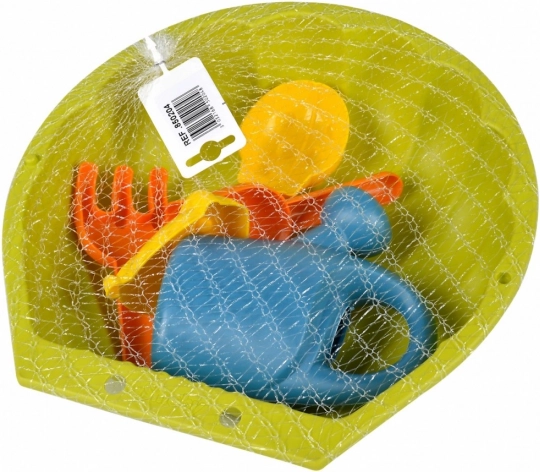 Комплектът включва гребло, лейка, лопатка и 2 формички за пясък, които добавят игривост и забавление по време на игра.