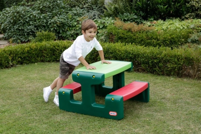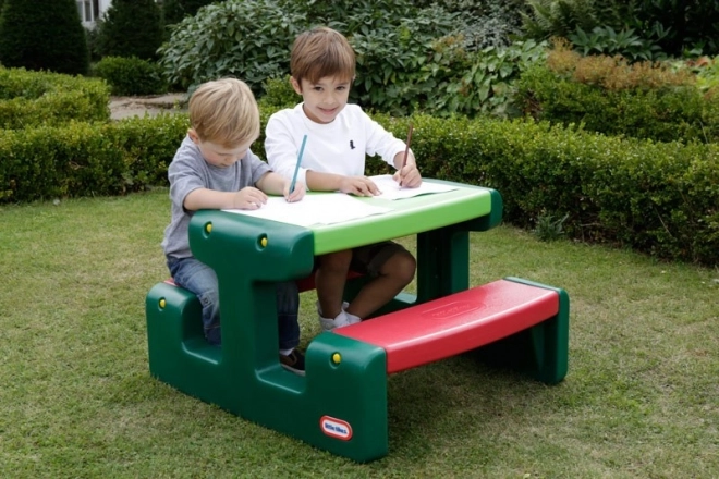 Търсите универсална детска маса за градината и за дома? Тази едночастна пикник маса LITTLE TIKES е идеална за творене, рисуване, моделиране и следобедни закуски. Здравата пластмасова конструкция издържа на ежедневна употреба, а поддръжката е въпрос на минути – достатъчно е да я забършете с влажна кърпа.