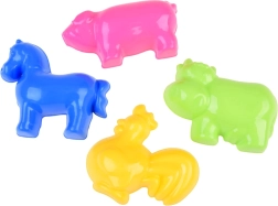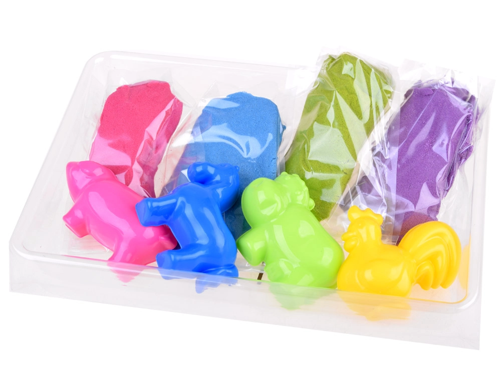 Благодарение на цветното пясъчникче и разнообразните формички децата могат да създават цели цветни ферми с животни.