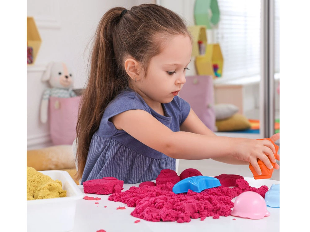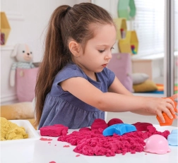 Играта с кинетичен пясък развива фината моторика и креативното мислене на децата. Специалната текстура и пластичната структура на пясъка осигуряват изключително приятни тактилни усещания. Пресипването на пясъка действа релаксиращо и успокояващо.