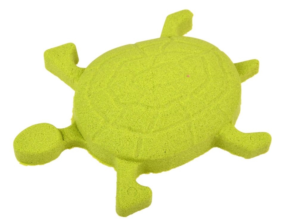 Кинетичният пясък има наситен зелен цвят, който придава ново измерение на играта и не оставя следи по ръцете.