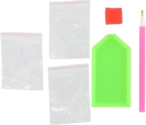 Апликационната писалка, паничката и восъкът позволяват удобно и чисто поставяне на камъчетата – можете да започнете да творите веднага след разопаковане.