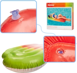 Стилното надуваемо легло във форма на сладолед на клечка впечатлява от пръв поглед с ярките си цветове. Идеално е за релакс на повърхността на басейна и осигурява удобство дори за по-високи хора благодарение на щедрите размери 185 × 89 см. След изпускане се пренася лесно и се побира в чанта за всяка почивка.