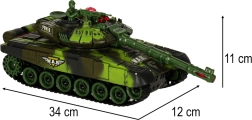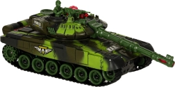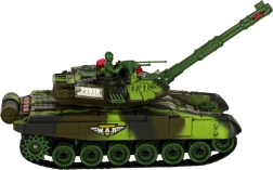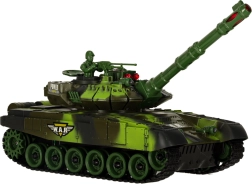 Насладете се на адреналинови дуели с RC танк в горска камуфлажна окраска. Предлага плавно управление на 2,4 GHz, въртяща се кула, реалистичен откат при изстрел, светлинни ефекти и звуци на мотор и стрелба. При попадение състоянието на битката се показва на задните индикатори, а след три попадения противникът е временно изваден от строя. В комплекта има презареждащ се акумулатор за танка и детайлна фигурка на стрелец. Перфектен подарък за малки и големи фенове на военната техника – игра и тренировка на умения в едно.