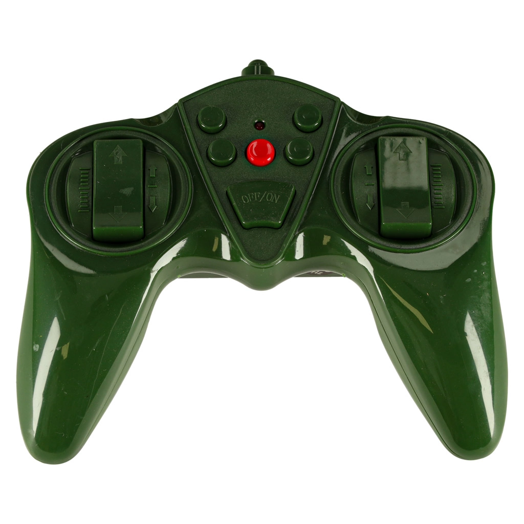 Реалистично бойно изживяване – радиоуправляемият танк с горска маскировка комбинира въртяща се кула (покритие до 360°), светлинни ефекти и автентичен откат при стрелба. При точно попадение индикаторите на противника изгасват, а след три попадения неговият танк се обездвижва за около 30 секунди.