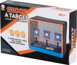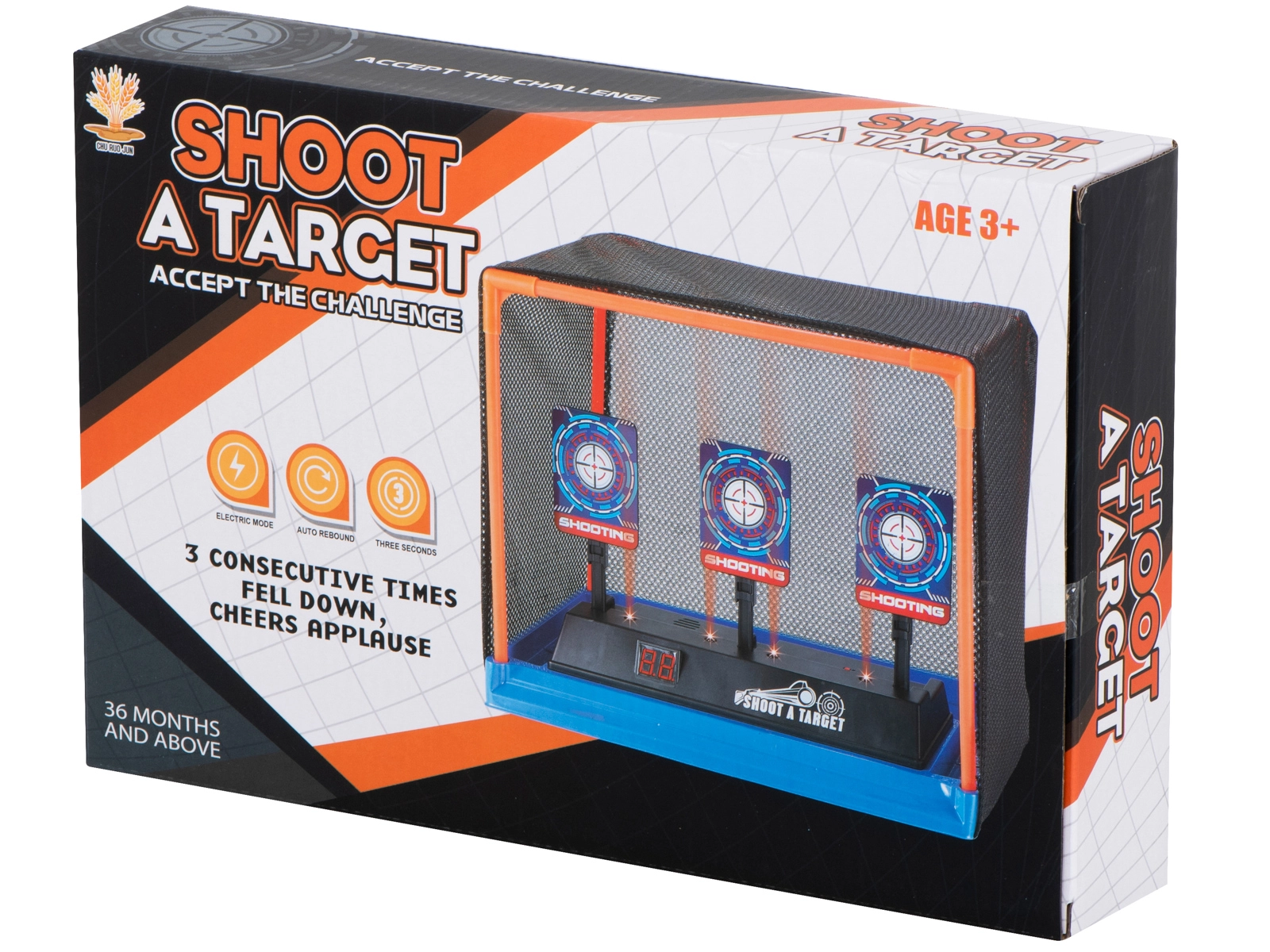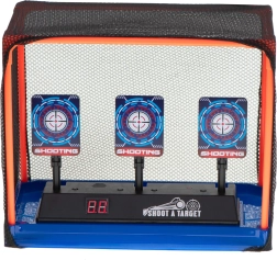 Електронната мишена за стрелба е страхотна играчка за деца и възрастни, които искат да тренират точност и координация око-ръка. При попадение целите падат, след сваляне на трите се автоматично изправят, а на LED дисплея се добавя точка. Подходяща за пянастрели и топчета.