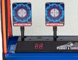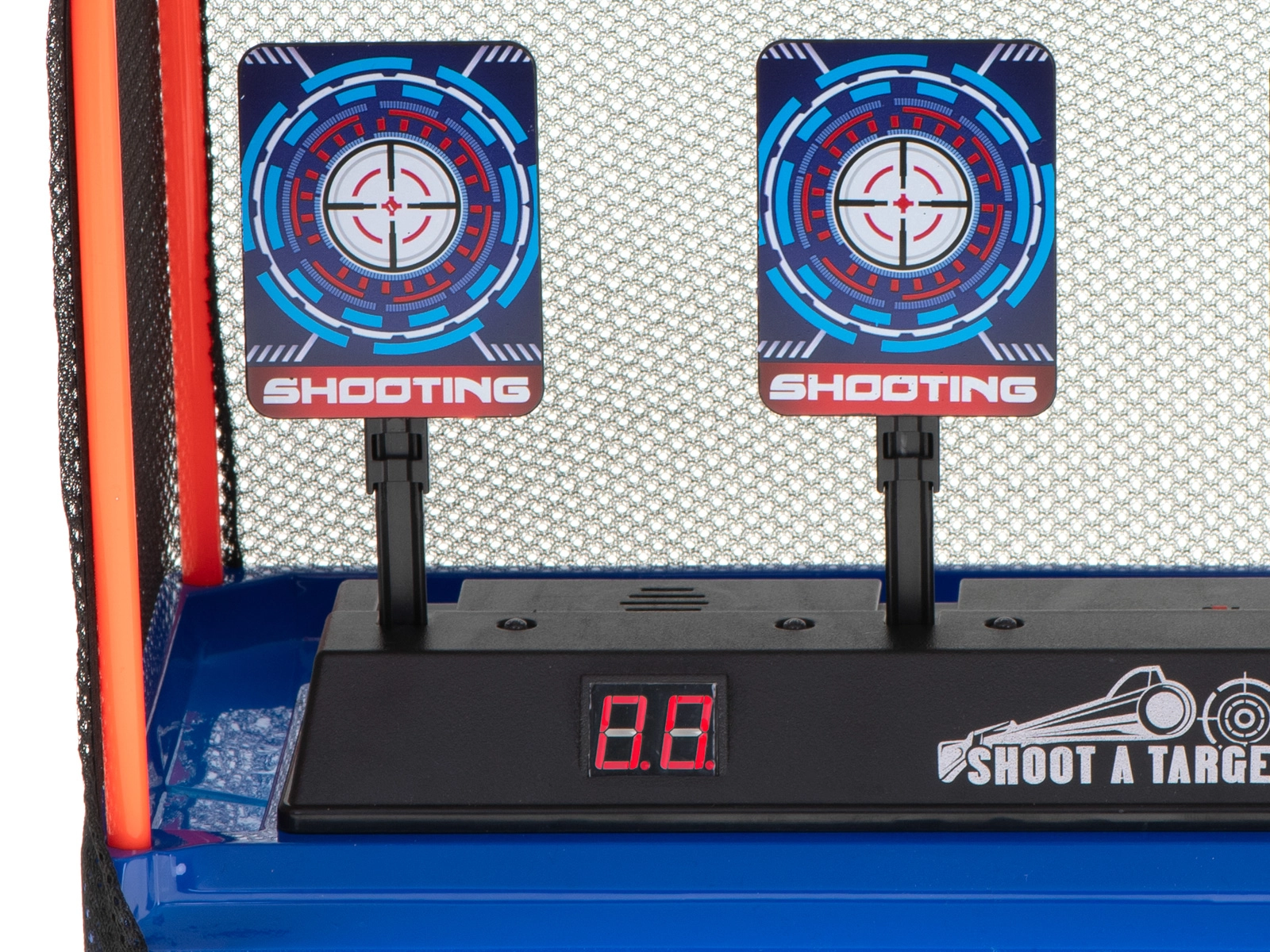 LED дисплеят брои точките, а след сваляне на трите цели те автоматично се изправят – плавна динамична игра без ръчно настройване.