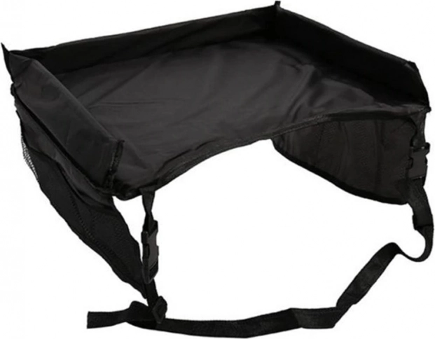 Практична пътна масичка за детско столче за кола и за количка от водоустойчив материал, която предлага стабилна повърхност за игра и хранене. Благодарение на регулируемите каишки и страничните мрежести джобове всичко необходимо е винаги под ръка, а пътуването е много по-удобно за деца и родители. Стабилна конструкция, водоустойчива повърхност и бърз монтаж я правят идеалният аксесоар за пътуване с кола, автобус или самолет.