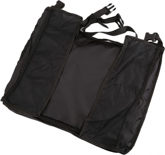 Четири мрежести джоба за аксесоари и регулируеми каишки с катарами за бързо прикрепване към столче за кола или количка.