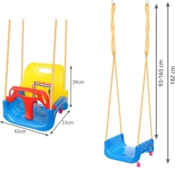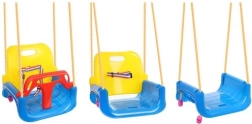 Тази цветна люлка 3-в-1 е отличен избор за прохождащи и по-големи деца. В конфигурация с Т-бар и висока облегалка вози безопасно най-малките, а по-късно можете да свалите предната и задната част и да я превърнете в класическа седалка. Предпазните колани с регулиране държат детето стабилно, докато релефната противохлъзгаща структура на седалката предотвратява приплъзване дори при по-енергична игра.