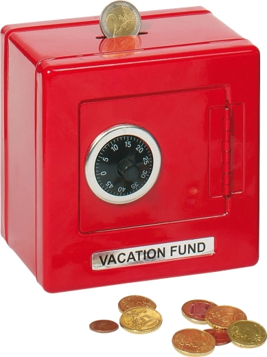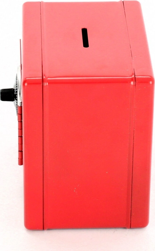 Употребата е лесна: първо завъртете копчето наляво един пълен оборот, след това в същата посока задайте първото число от кода. След това, като завъртите надясно, веднага задайте второто число и вратата ще се отвори. Сейфът има практичен отвор за пускане на монети и е чудесно допълнение към детската стая.