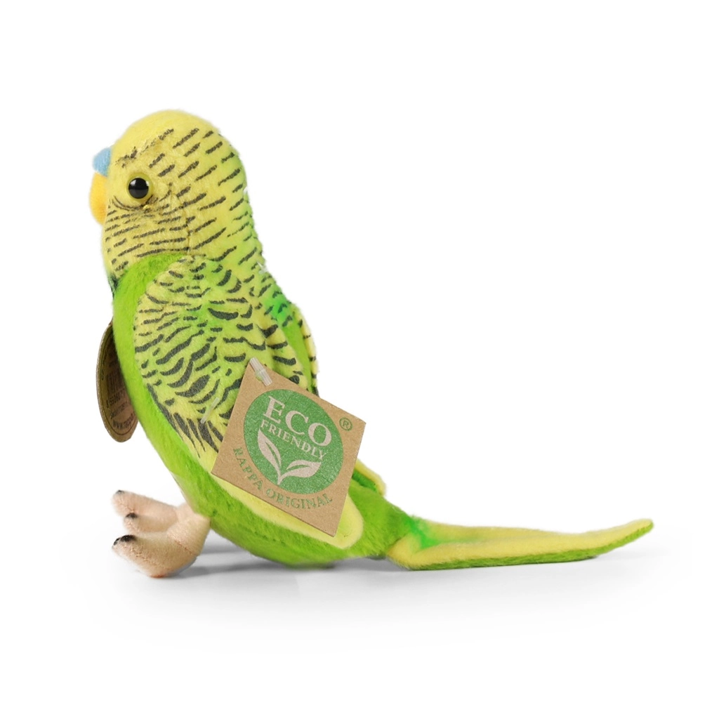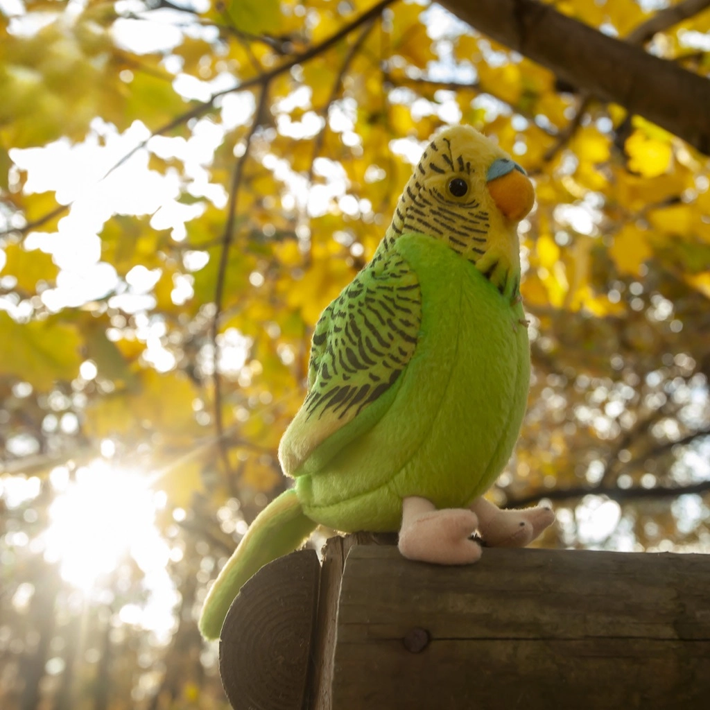 Носи правдоподобен вид и приятно усещане при допир. Всяко папагалче има детайлно изработено оперение, реалистично оцветяване и при лек натиск на коремчето издава автентично чуруликане, което подпомага играта и развитието на сетивата.