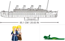 Включена е поставка с табелка „Titanic“. Конструкторът е съвместим с LEGO, Cobi и Mega Bloks за неограничено разширяване.