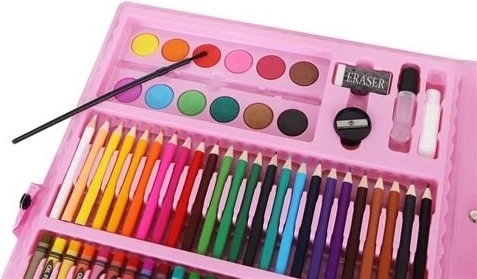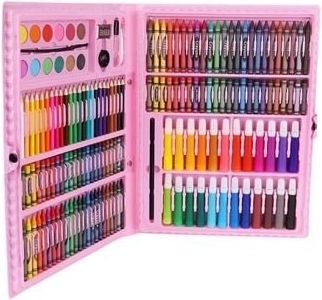 Комплектна творческа серия в практично розово куфарче със 168 части за малки и големи творци. Вътре ще намерите цветни моливи, флумастери, пастели, маслени пастели, акварели и полезни аксесоари, включително хартии и палитра. Благодарение на прегледните отделения и дръжката е идеален за у дома, училище и пътуване.