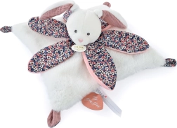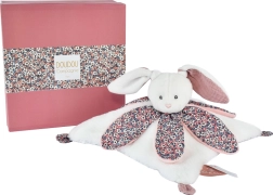 Това очарователно гушкалче с главичка на зайче и мекичко одеялце носи на бебето усещане за сигурност, нежност и фини стимули за развитие на сетивата. Едната страна е от ултрамек плюш, а другата от прясно щампуван памук, проектиран от стилисти, който привлича както с визия, така и с допир.