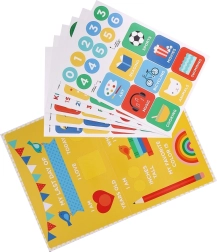 Комплектът съдържа 97 цветни стикера с различни символи, числа и мотиви, които привличат вниманието на децата и ги мотивират.