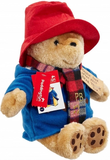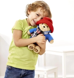 Мечето носи характерната червена шапка, син шлифер, който може да се сваля, и елегантен кариран шал с инициали „PB“. Благодарение на безопасната изработка е подходящо още от раждането и приканва към гушкане, игра и дори експониране на рафт.