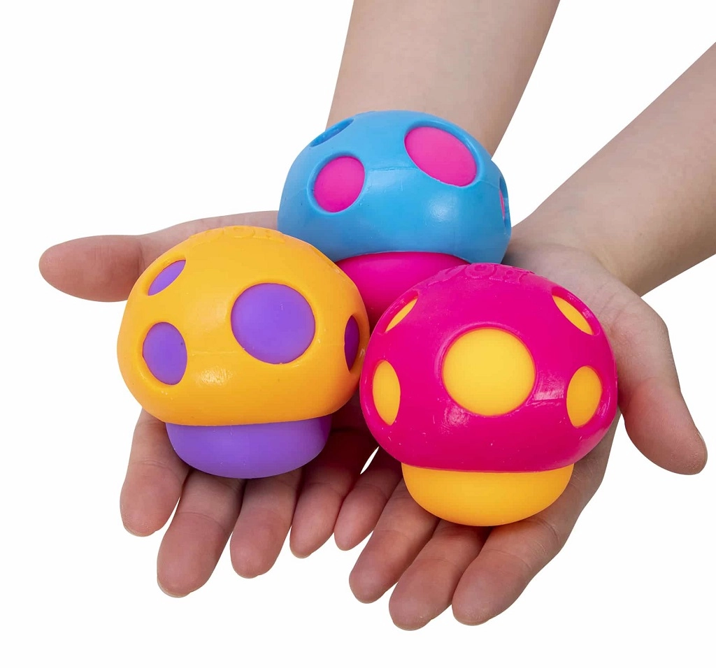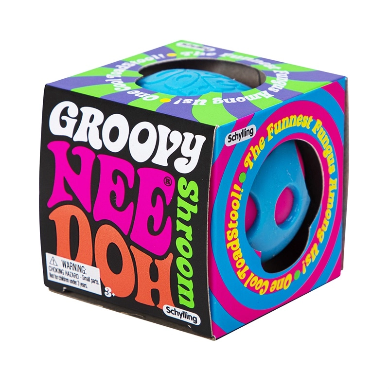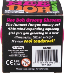 Мачкащата гъба NEE DOH groovy shroom от SCHYLLING е забавна антистрес играчка във форма на гъба с цветни отвори, през които при натиск се протиска меката вътрешност. Предлага силно осезателно изживяване, помага да се успокои умът и да се фокусира вниманието по време на учене, работа и почивка.