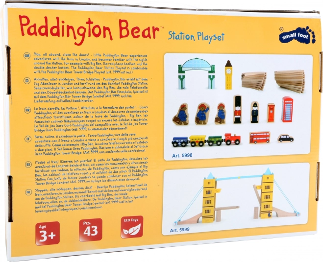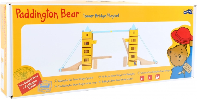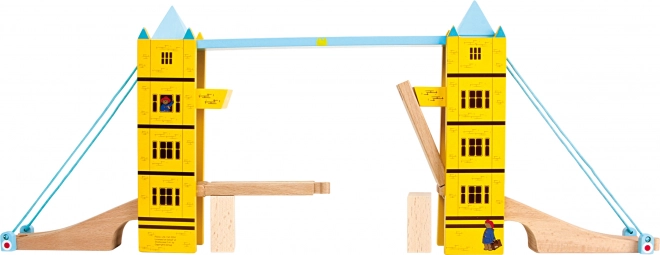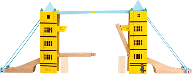Стилен дървен повдигащ се мост, вдъхновен от лондонския Tower Bridge, добавя динамичен елемент към всяка влакова писта. Благодарение на повдигащата функция, вградените магнити за безопасно задържане на релсите и веселия мотив с мечето PADDINGTON той развива въображението, сръчността и координацията на децата. Съвместим с популярни марки влакчета от дърво.