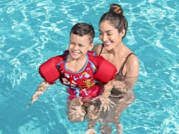 Любимите герои мотивират децата към водни игри и учене. Яркочервеният цвят със сини детайли подпомага по-добрата видимост край водата.