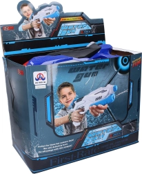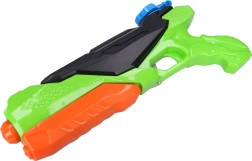 Тази помпена водна пушка е отличен избор за динамични водни битки. Достатъчно е да напълните резервоара, да напомпате няколко пъти и можете да изстреляте дълга и концентрирана струя вода. Здравата пластмасова изработка и обмислената форма гарантират стабилен хват и комфорт дори при продължителна игра.