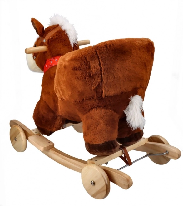 Това люлеещо се конче е идеална играчка за всяко дете, което обича движението. Със своята здрава дървена основа и колелца предлага както традиционно люлеене, така и възможност за придвижване из стаята.