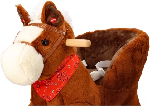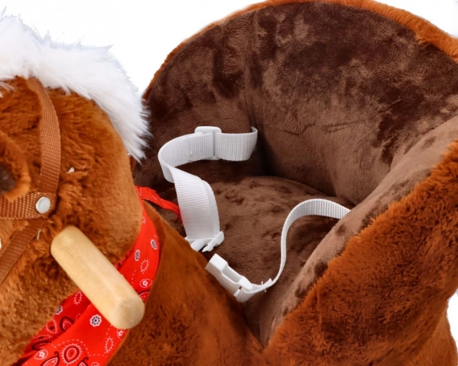Проектирано с акцент върху безопасността и комфорта, разполага с мека седалка с приблизителни размери 20 x 14 cm, която осигурява удобно седене по време на люлеене. С бяла грива и червен шал, това конче носи не само забавление, но и стил.
