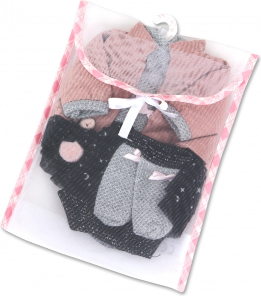 Поднесете на своите кукли нов стил с този прекрасен комплект дрешки за кукла Llorens. Този 4-частов сет включва красива ластичка с панделка, предназначена за кукли с размер 35 см. Детайлният комплект насърчава креативната игра и внася елегантност. Ръчно изработено в Испания, всеки екземпляр е уникален. Опаковката включва пластмасова закачалка за практично съхранение.
