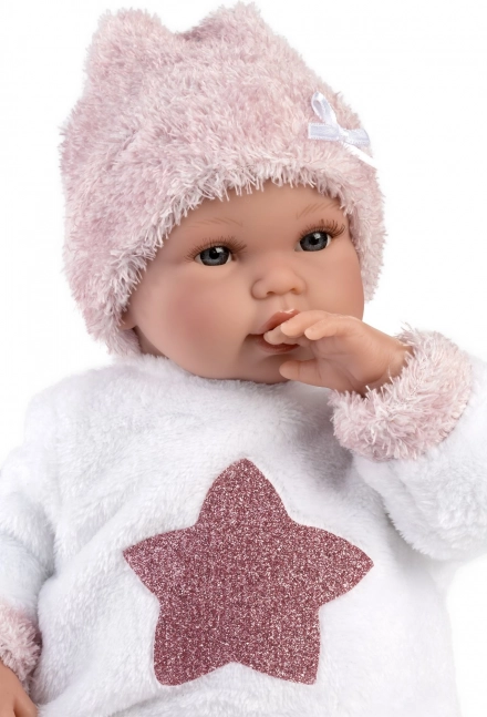 При натискане на гърдите куклата казва „мама“, „тате“ и издава автентичен плач, който насърчава грижовната игра и емпатията.