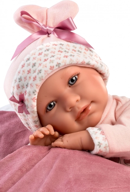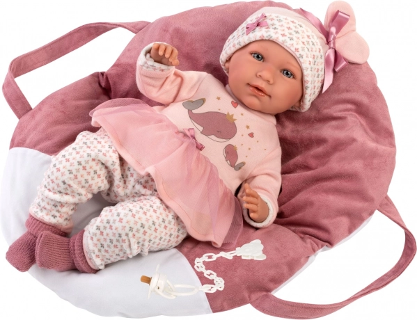 Очарователното бебе Llorens NEW BORN с размер 42 cm има меко текстилно тяло, реалистични черти и при натискане на гърдичката казва „мама“, „папа“ и издава звук на плачещо бебе. Благодарение на ставните крайници е позиционируемо и може да седи. Ръчно изработено в Испания, опаковано в подаръчна кутия.