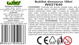 Забавен балонен меч във формата на динозавър ще зарадва и малки, и големи. Благодарение на обема от 100 ml и дължината 35 cm ще създавате множество красиви мехурчета. Налични са 4 цветови варианта – син, жълт, зелен и розов.