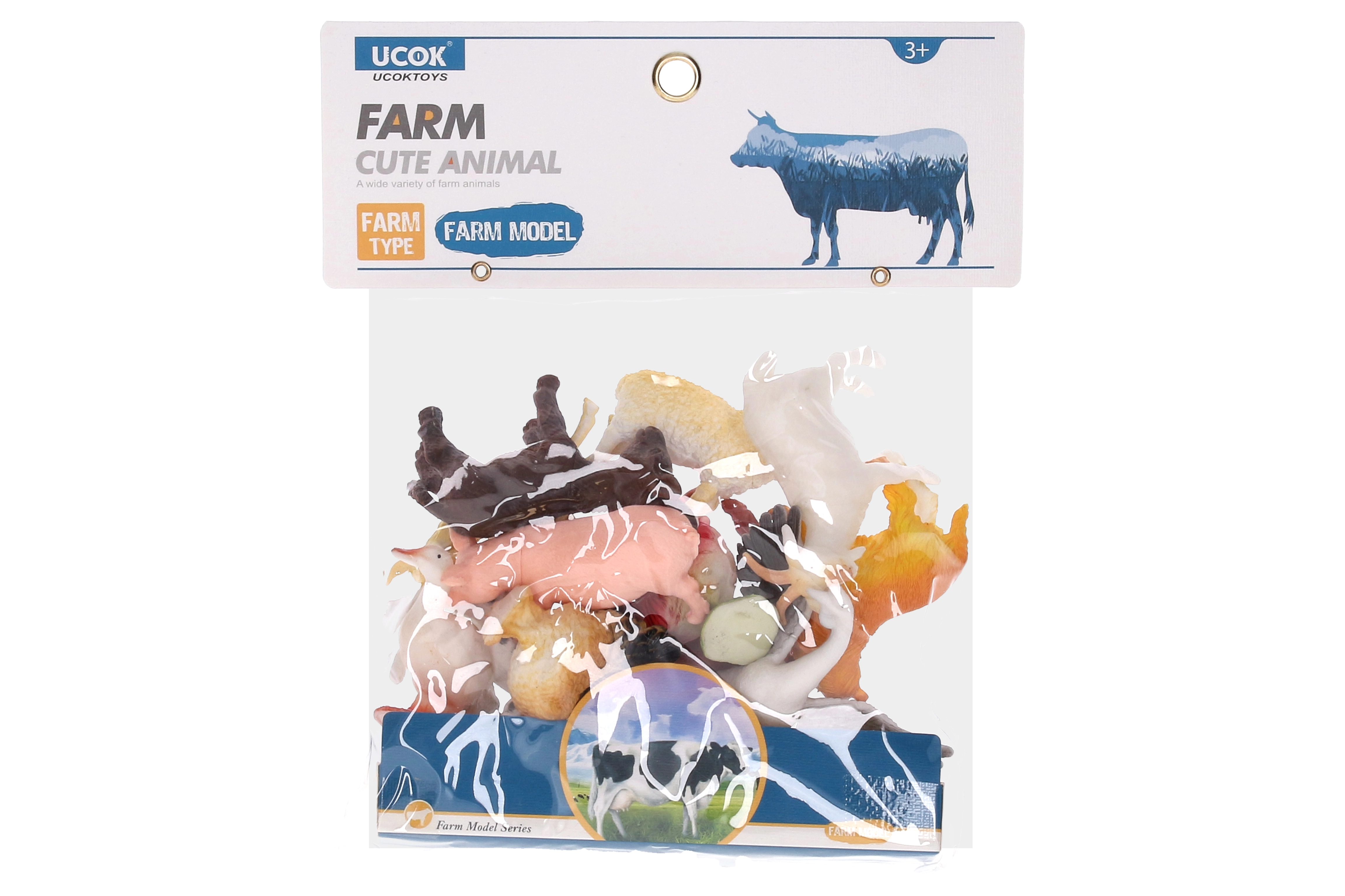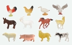 Този комплект съдържа 12 детайлно изработени фигурки на фермерски животни. Всяка фигурка е с приблизителен размер 10 см и представя реалистичен образ на животни, които децата обикновено срещат във фермата.