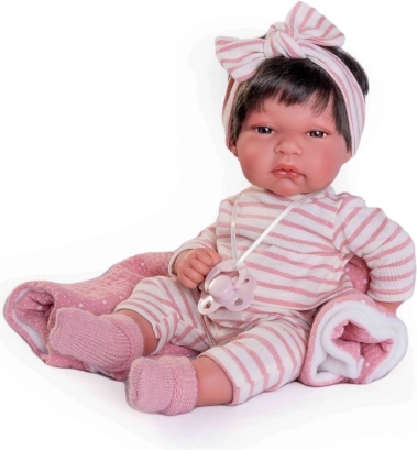Тази реалистична бебешка кукла от испанската марка Antonio Juan е изработена с внимание към детайла, включително реалистични гънки и пол. Направена е от мек винил, който е много приятен на допир. Някои от дрехите са изработени от органичен памук, което подчертава екологичния подход на компанията. Куклата е с височина 33 см и е идеален подарък, опакован в красива подаръчна кутия. Подходяща за деца от 3 години.