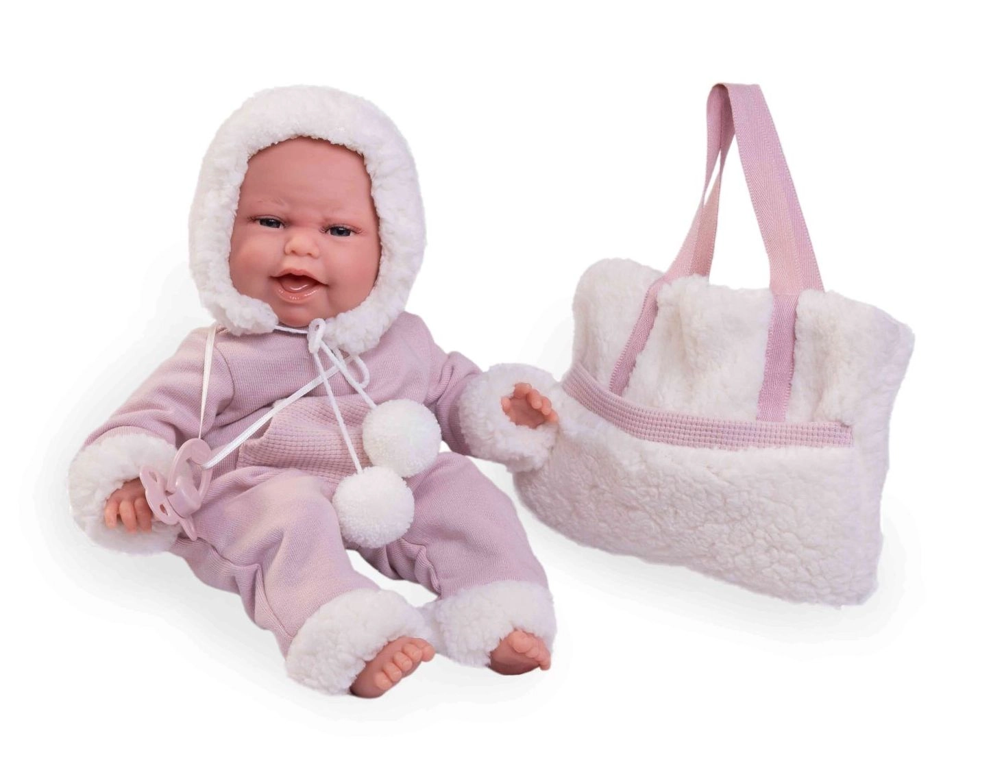 Благодарение на вътрешната опора на скелета куклата може да движи крайниците си в естествени бебешки пози.