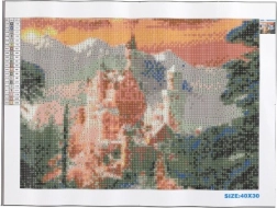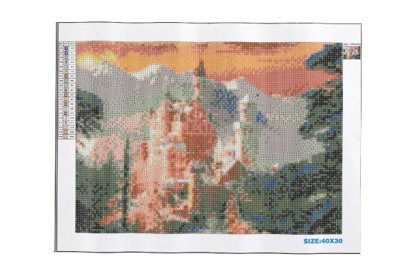 Подреждайте камъче по камъче и превърнете предпечатаното платно в искрящ образ на легендарния замък Нойшванщайн, облян в зимна атмосфера. Диамантеното рисуване е интуитивно, не изисква предварителен опит и носи прекрасен резултат, който след завършване лесно може да се рамкира (рамката не е част от комплекта).