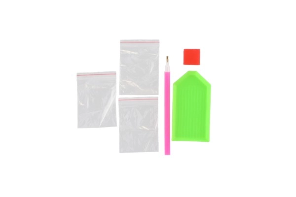 - Пълен комплект: платно с легенда, апликационна писалка, ваничка, восък, комплект цветни камъчета.