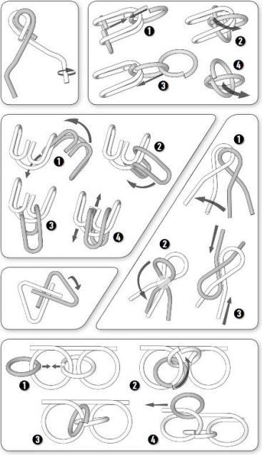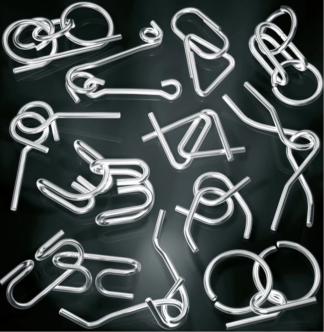 - 12 метални пъзела, метална кутийка, графично показано решение